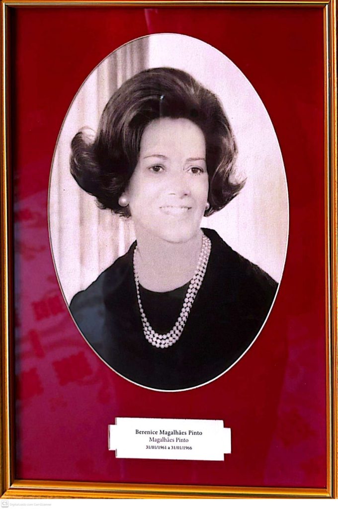 Retrato retangular, com moldura dourada e paspatur em formato oval, forrado em veludo vermelho. O espaço reservado à imagem, no interior da moldura, mostra Berenice Catão de Magalhães Pinto, trajando um sobretudo preto que cobre parte de sua blusa, também em tonalidade escura. Ela está usando brincos e colares de pérolas enquanto sorri, com o […]
