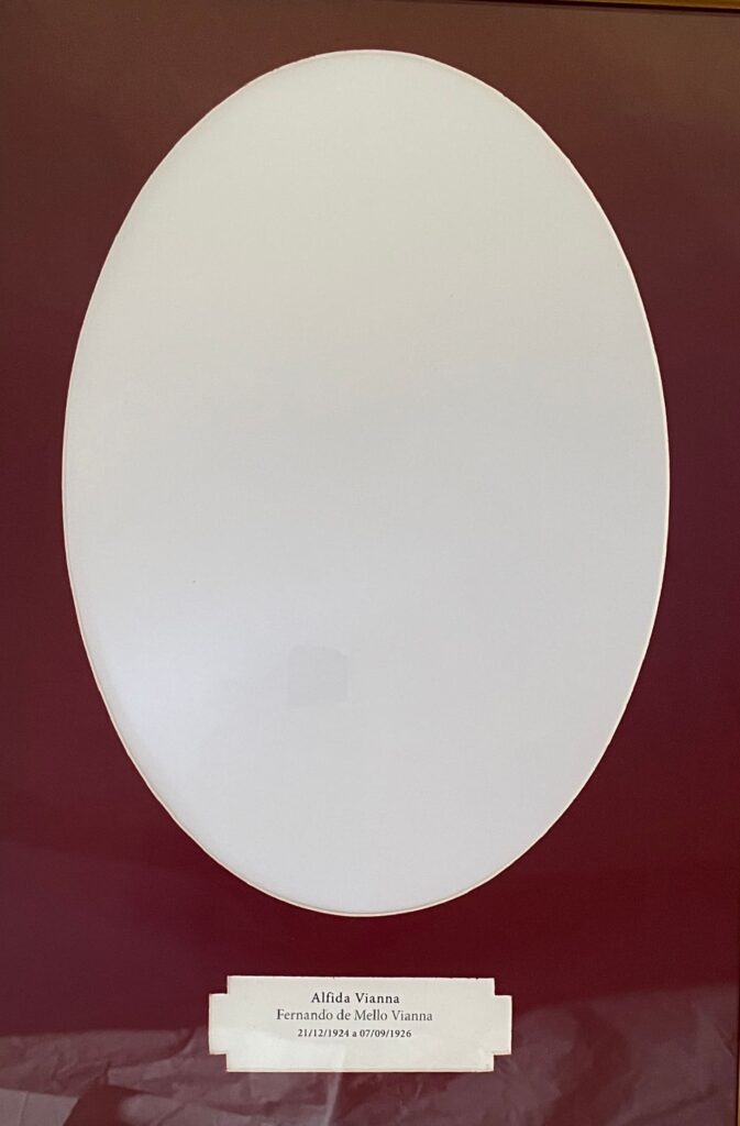 Retrato retangular com moldura dourada e paspatur em formato oval, forrado em veludo vermelho. O espaço reservado à imagem, no interior da moldura, mostra Vera Monteiro de Barros de Suckow trajando um blazer feminino preto com acentos brancos. Seus cabelos são completamente grisalhos e curtos. Em seu pescoço, se encontra um longo colar enrolado, ou, […]
