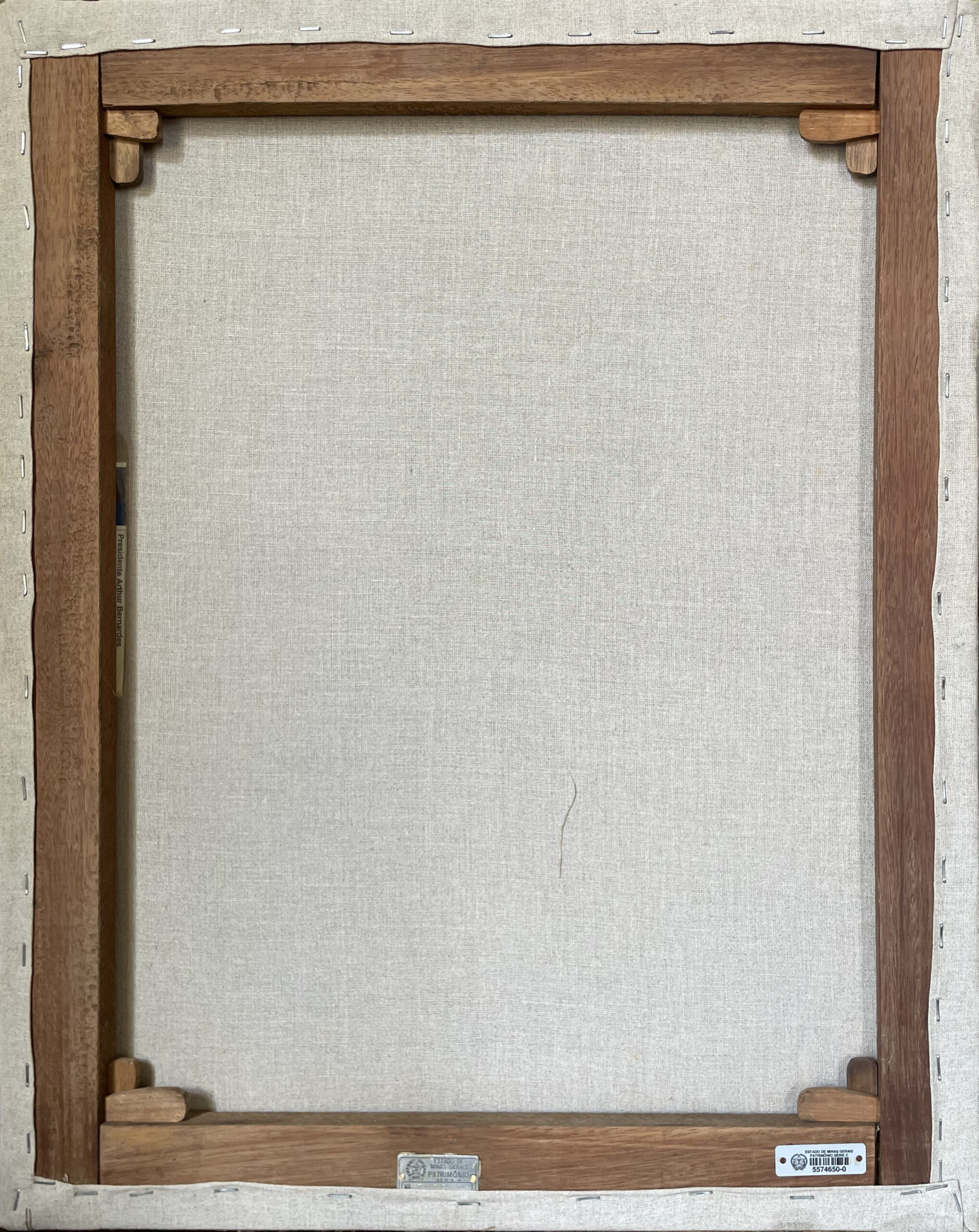 Retrato do Presidente Artur Bernardes,trajando terno azul-marinho, camisa branca com gravata borboleta branca, tem a faixa presidencial verde e amarela - com o escudo das Armas Nacionais. Usa óculos de aros finos ovais. Fundo em azul. Moldura retangular com friso interior dourado.