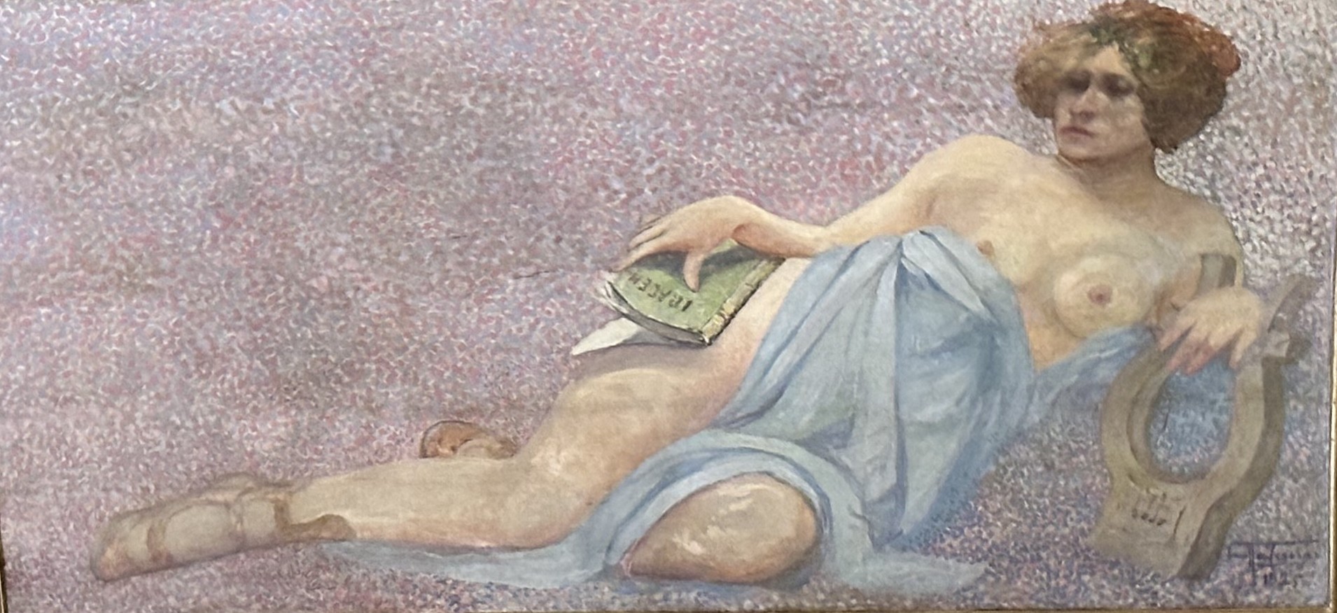 À direita de quem entra no Salão de Honra, no alto do ambiente, sobre a parte curva do teto, chamada abóbada, encontra-se a pintura que representa a Poesia/Literatura. A obra foi realizada com tinta a óleo pelo artista brasileiro Antônio Parreiras, durante sua estadia na França, e concluída no ano de 1925. No fundo da composição é utilizada a técnica de Pontilhismo, composta por diversos pontos pincelados ordenados, com variações de tons entre lilás, rosa e branco.