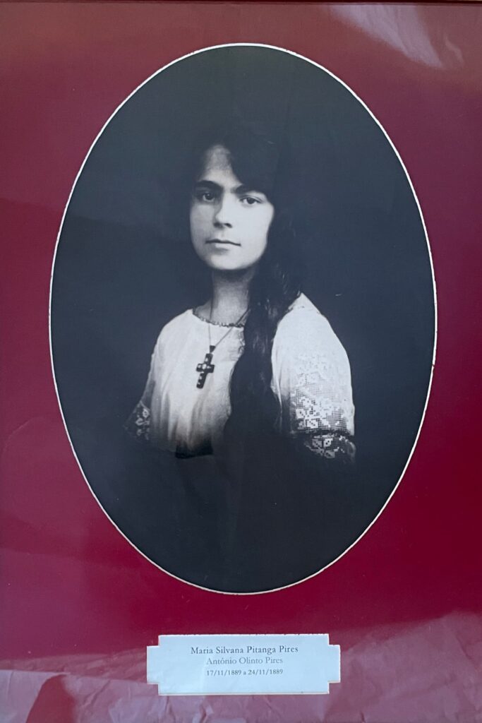 Retrato retangular com moldura dourada e paspatur em formato oval, forrado em veludo vermelho. O espaço reservado à imagem, no interior da moldura, mostra Maria Silvana Pitanga Pires trajando uma peça branca lisa, sem estampas. Seus cabelos são escuros e estão soltos por cima de um dos ombros. Em seu pescoço, se encontra um crucifixo. […]