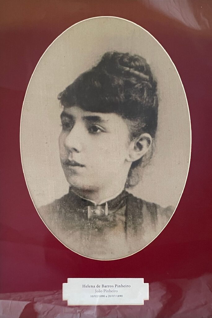Retrato retangular com moldura dourada e paspatur em formato oval, forrado em veludo vermelho. O espaço reservado à imagem, no interior da moldura, mostra Helena de Barros Pinheiro trajando uma peça escura sem estampa, possivelmente a parte superior de um vestido. Seus cabelos são escuros e estão presos em um penteado no topo de sua […]